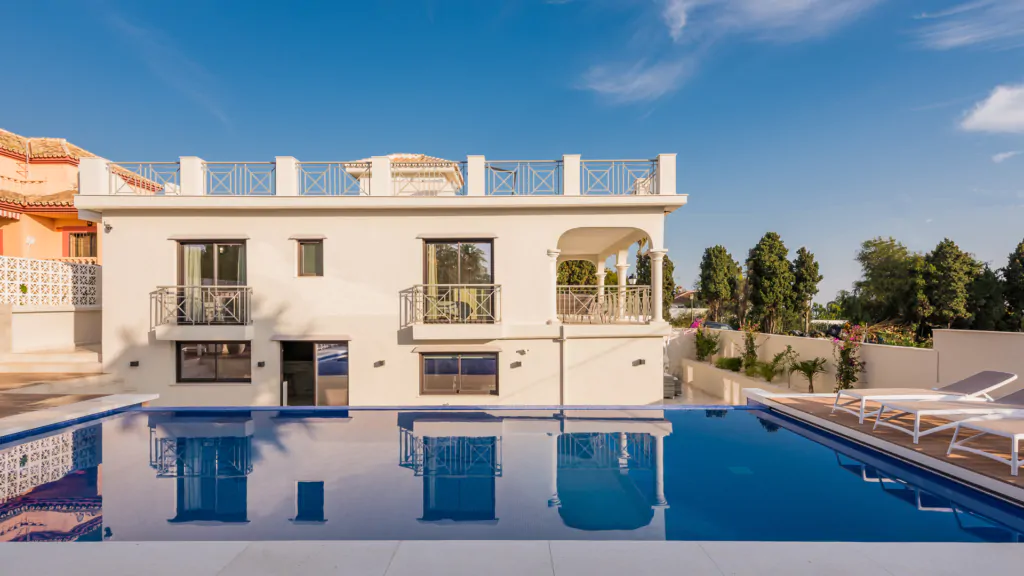 This stunning detached villa enjoys a privileged setting just 2 minutes’ walk from the beach in the prestigious Rio Real area of Marbella. Ideally located close to the upcoming Four Seasons complex, the renowned Rio Real Golf Course, La Cañada Shopping Centre and Marbella’s vibrant town centre, it offers an unmatched combination of exclusivity and convenience.