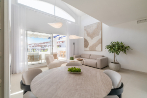 You would love to live in this San Pedro de Alcántara penthouse because it nails the dream mix of beachside convenience, style and comfort: beautifully renovated 3 beds + 3.5 baths, elegant Scandinavian furnishings, open-plan kitchen and vaulted ceilings, and a generous terrace plus upstairs master suite with private terrace, Jacuzzi and BBQ with panoramic and sea views. It’s inside a small gated community with lush gardens and communal pool, yet just steps from the beach, shops, restaurants and town centre. Add underground parking for two cars and the move-in ready condition, and you’ve got a lifestyle property to enjoy year-round.